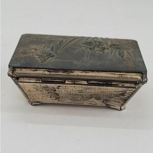 Vintage Metal Iris Flower Raised Relief Silk Lined Trinket Box Jewelry Box