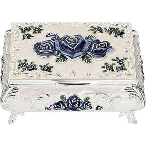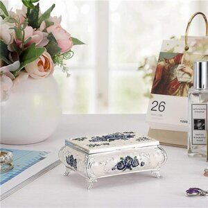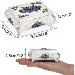 Vintage Metal Jewelry Box Small Treasure Chest Case Trinket Organizer Earrings