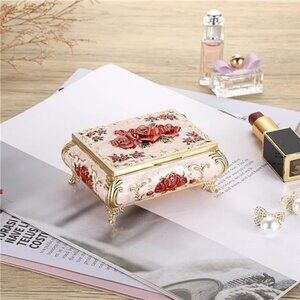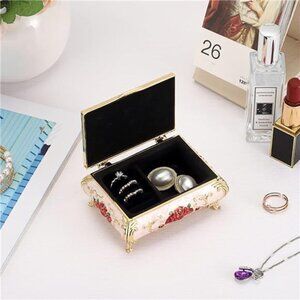 Vintage Metal Jewelry Box Small Treasure Chest Case Trinket Organizer Earrings
