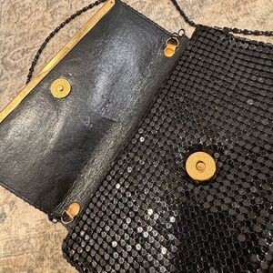 Vintage Metal Mesh Chain Crossbody Bag / Clutch - Black & Gold Retro Purse