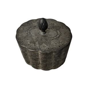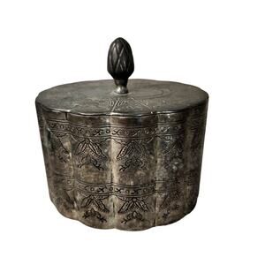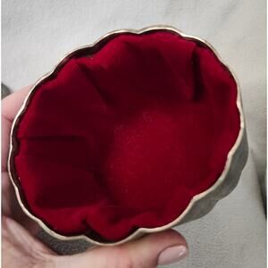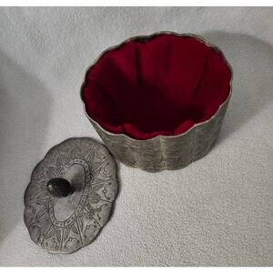 Vintage Metal Red Velvet Lined Lidded Vanity Jar Container Silver Etched