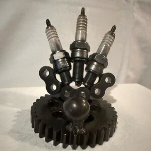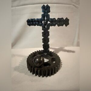NOT A TOY. Item is either art or home decor accent for display only. Item appears to be hand forged and either it was painted black at some point or metal has turned black, a few small rust spots visible if you look closely in good lighting, otherwise not noticable.