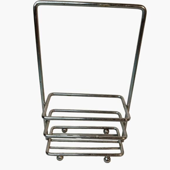 vintage kitchen decor, metal salt pepper holder, retro kitchen accessory, stainless steel caddy, elegant silver holder, classic charm kitchen, salt pepper caddy, durable kitchen accessory, compact salt pepper holder, easy to clean caddy, stylish kitchen caddy, silver salt pepper holder, retro dining accessory