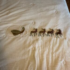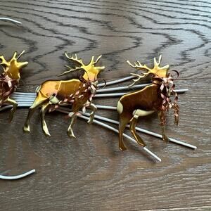 Vintage Metal Santa, Reindeer with Bows and Sleigh Holiday Home Decor
