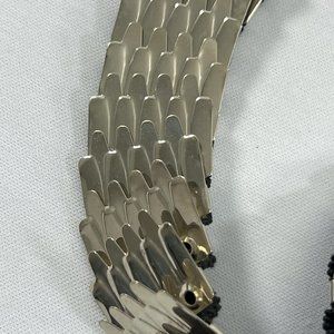 Vintage Metal Silver Tone Elastic Stretch Belt Layered Textured Unbranded