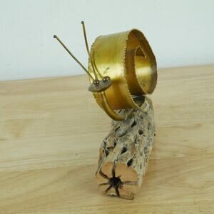Vintage Metal Snail Sculpture 70s MCM Whimsical Goblincore Decor Tramp Art MCM