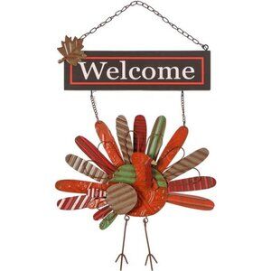 Vintage Metal Thanksgiving Turkey Wall Hanging Decoration Welcome Sign