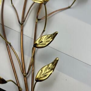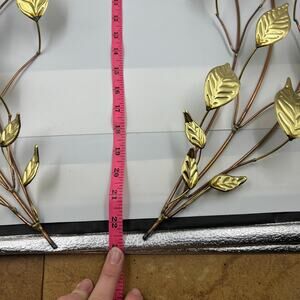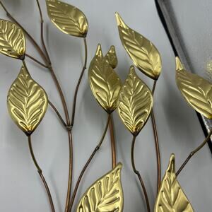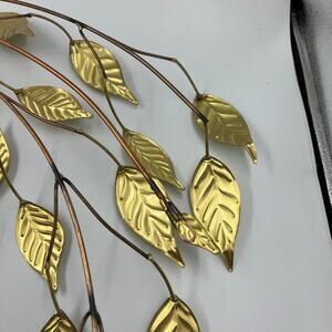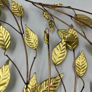 Vintage Metal Thin Hammered Gold Tone Leaves & Branches MCM Wall Hanging