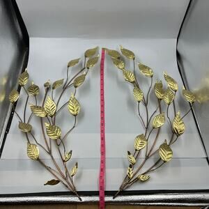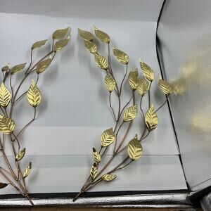 Vintage thin metal hammered leaves and branches, gold tone, midcentury modern, wall hanging decor. Both pieces are in good condition as pictured.