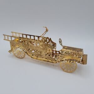 Vintage Metal Tin Gold Old Car Christmas Ornament