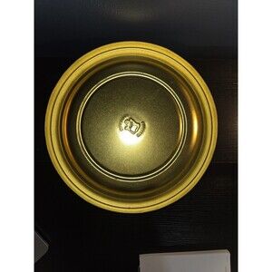 This vintage metal tin from Guildcraft is a colorful addition to any collection. The tin features a design of "The Age of Innocence " oil painting. Measuring 10 inches in diameter and 4 inches in height, this tin was made in the United States and is in excellent condition. The California Prop 65 warning does not apply to this item.
