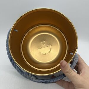 Vintage Metal Tin with Roped Handle Blue White