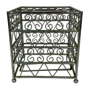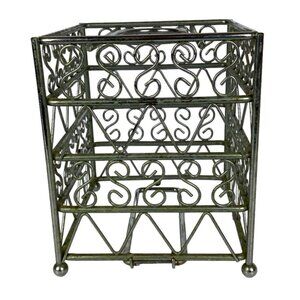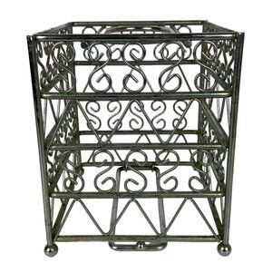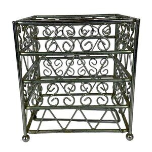 Vintage Metal Tissue Box Cover Square Silver Chrome Scroll Design Bathroom Decor