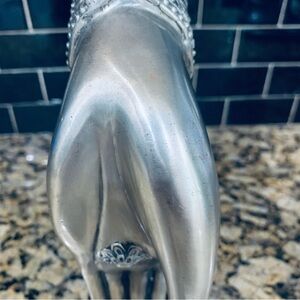 This captivating display art piece features a vintage metal sculpture of a Buddha hand in the Vitarka Mudra posture, symbolizing the gesture of teaching and intellectual discussion. The hand is intricately crafted, showcasing detailed lines and textures that reflect the skill and artistry involved in its creation. Mounted on a sturdy base, the piece is elevated, giving it a prominent and dignified presence. The combination of metal materials adds a rustic yet elegant charm, making it a perfect addition to any space. This Buddha hand sculpture serves as a serene and inspiring decorative accent, ideal for meditation areas.