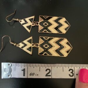 EUC excellent condition & quality! Beautiful cream & black Aztec style metal dangling earrings. Boho. Measurements in photos. Smoke free home
