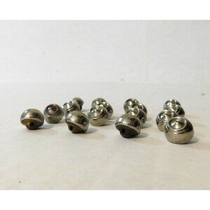 This delightful set of 16 vintage metallic dome buttons is a glimpse into timeless craftsmanship. Each button, measuring approx. 3/8 inch, features a shiny metallic finish with a touch of patina, likely a sign of their storied past. Whether you're a collector, crafter, or simply enchanted by vintage finds, these charming buttons come with endless possibilities for adding distinct detail to your projects, repairs, or garments.