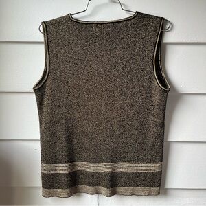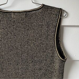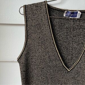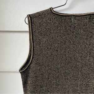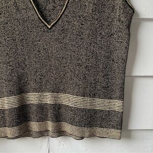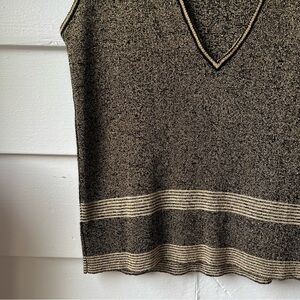 Vintage Metallic Gold and Black Sleeveless V-Neck Knit Top