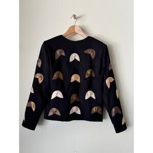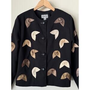 Vintage Metallic Leather Fortune Cookie Appliqué Jacket