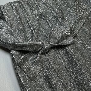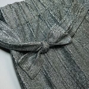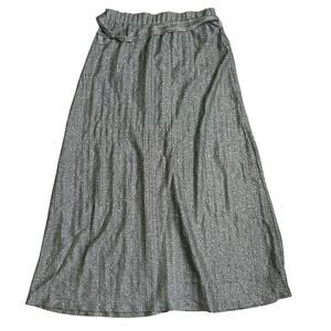 Vintage Metallic Silver Maxi Skirt 1980s Shimmer Christmas Holiday Bow Plus Size