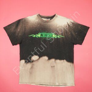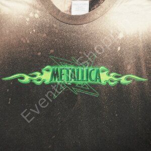 Vintage Metallica Shirt Adult L Black Bleach Dye Y2K Flames 2002