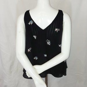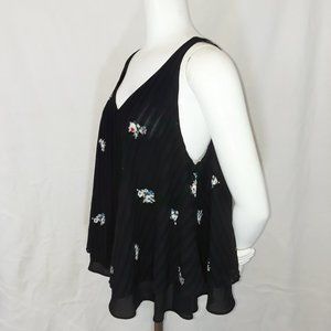Vintage Metaphor Black Lined Striped Floral Flowy Circle Tank Top XL