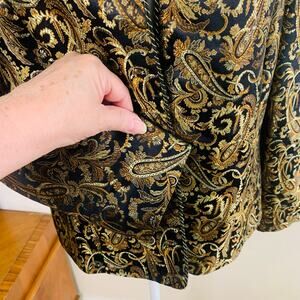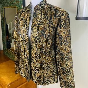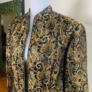 Vintage Metaphor Size L Blazer Black Gold Jacquard Paisley Open Front Jacket