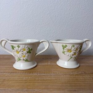 Vintage Metlox Ivory Ceramic Cream and Sugar Bowl With Embossed Daisy Design