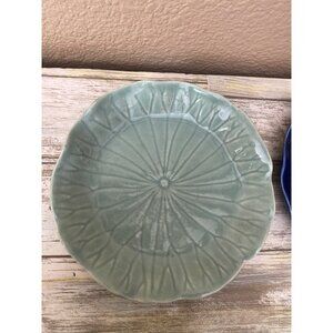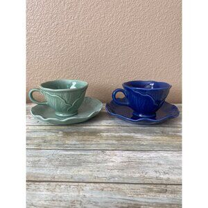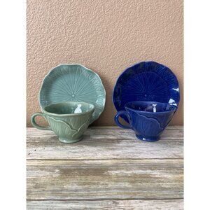 Vintage Metlox Lotus Teacup & Saucer Sets 1960s MCM Celadon & Cobalt Blue