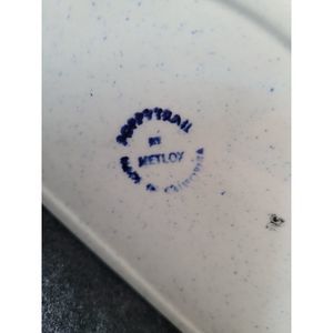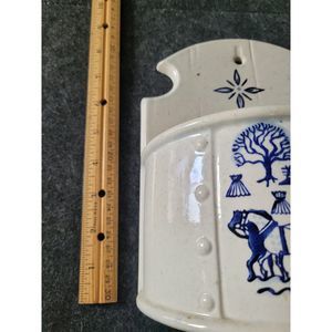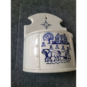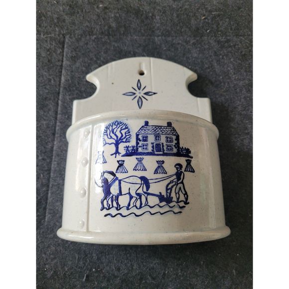 Vintage Metlox Provincial Blue Poppytrail Homestead Salt Box. The Salt Box has no lid. This sweet Metlox Salt Box is in great shape, no cracks or chips, clean inside. The box is 8,5 inches tall, 6.5 inches wide, 3 3/4 inches deep. Would be a great wall planter, or table planter, cute utensil holder,