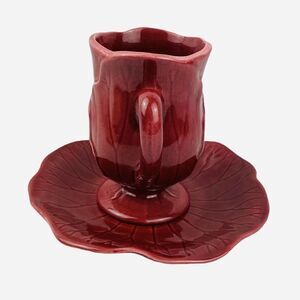 Vintage Metlox Poppytrail Lotus Cranberry Pedestal Mug Cup and Saucer Set USA 1179 California Replacement Fairycore Cottagecore Tea Coffee Floral Petal Bloom