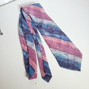 Vintage Metropolis 70s Pink Purple Blue Stripe Drip 100% Silk Mens Tie Retro Cityscape abstract