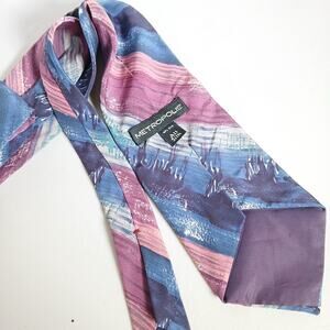 Vintage Metropolis 70s Pink Purple Blue Stripe Drip 100% Silk Mens Tie Retro