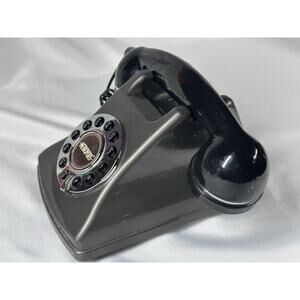 The Vintage Metropolis Style Desk Phone is a retro style push-button phone that exudes a classic charm with its black and silver color scheme. Made by Conair in China, this collectible piece is a unique addition to any vintage decor. The phone features a sleek design that harks back to a bygone era, making it a conversation starter and a stylish accent in any home or office setting. Its nostalgic appeal and functionality make it a sought-after item for collectors of vintage telephones.
