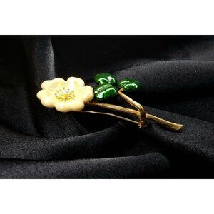 Vintage Metropolitan Museum Of Art Flower Brooch Cream & Green