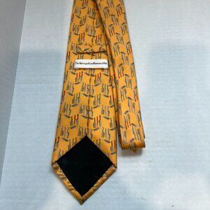Vintage Yellow Metropolitan Museum of Art 100% Silk Tie featuring an all over garden tools pattern. Made in USA. Good vintage used condition.