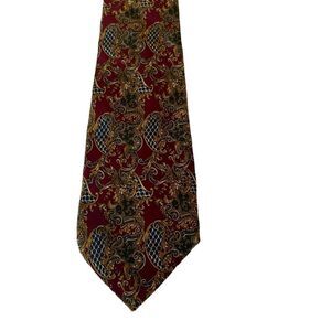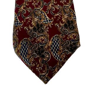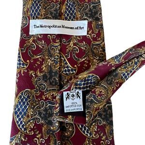 Vintage Metropolitan Museum of Art Damask Baroque Style Silk Tie Burgundy & Gold