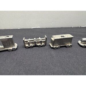 Enhance your collection or decor with this intricate 6-piece vintage pewter train set. Compact, durable, and timeless, it makes a unique gift or display piece. Vintage birthday cake candle holders.