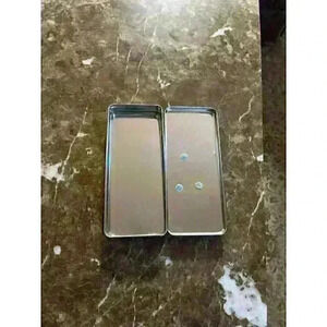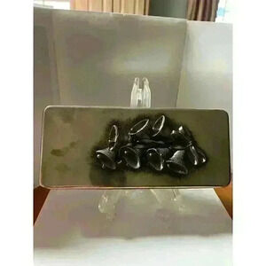 Pewter bells on lid, tin storage box 4” x 9” x 1 1/2” Great condition