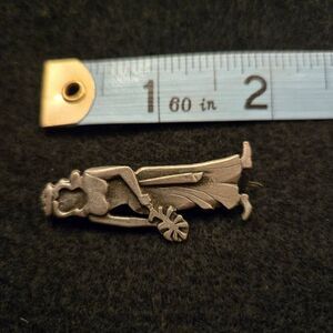 Vintage Metzke Pewter Girl with leaf Pin Brooch
