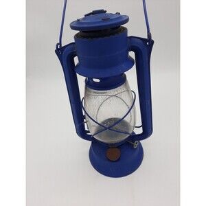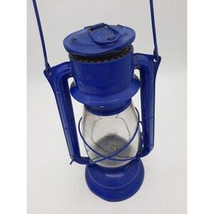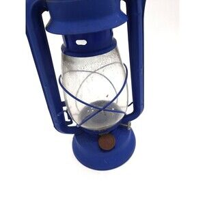 This vintage Meva 865 oil lamp is a beautiful addition to any collection. The lamp, made of metal and finished with a traditional oiled look, features a stunning blue color that is sure to catch the eye. Standing at 13 inches tall and 6.5 inches wide, this medium-sized lamp is perfect for any room.
