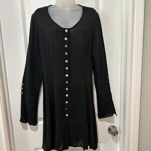 Vintage Mevisto Black Sheer Long Sleeve Dress, Size 8