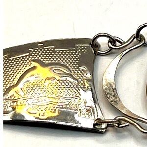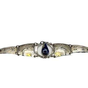 This exquisite vintage bracelet features a beautiful blue Lapis stone drop pendant, set in intricate Mexican Alpaca silver with detailed etchings.