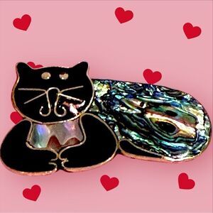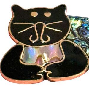 Wonderful vintage Mexican silver Alpaca pin with inlaid abolone. The pin has black enamel and wonderful details. The pin is stamped on the back, the pin back works perfectly. Excellent condition.