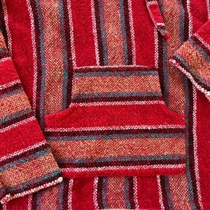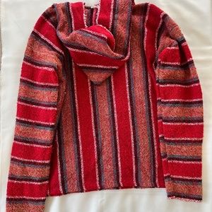 🦋 Love this red striped baja hoodie pullover, comfy and pointed hood detail, great colors on this one. Pouch Front Pocket.