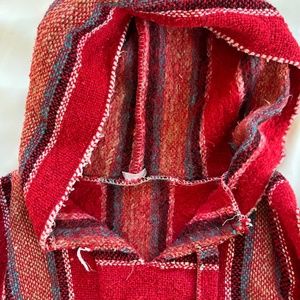 Vintage Mexican Baja Blanket Drug Rug Hoodie Pullover Red White Blue Surfer Skater Poncho Size S / M (estimated)