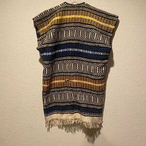 Vintage Mexican Blanket Vest Poncho Handwoven with Pockets Boho 23x29