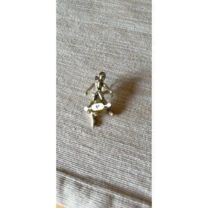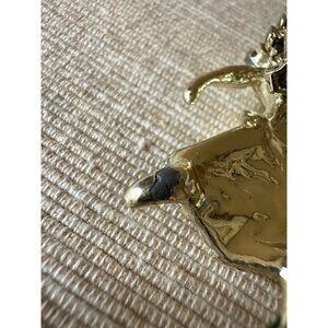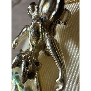 This piece is in good vintage condition with personality to spare. There are some enamel/paint-like marks on the skirt and a bit of plating wear at the edges (see photos). Nothing that keeps her from dancing her way into your collection!