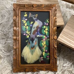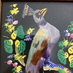 Vintage Mexican Feathercraft Bird Pictures With Carved Frames Bundle Of Two