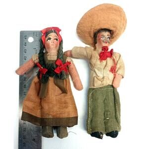 Vintage Mexican Folk Art Fabric Cloth Handmade Dolls 6" Set of 2 1940's?