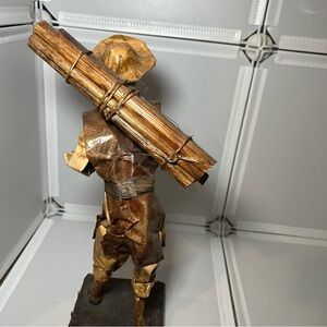 Vintage Mexican Folk Art Paper Mache Figurines Old Man Carrying Wood Logs 13”